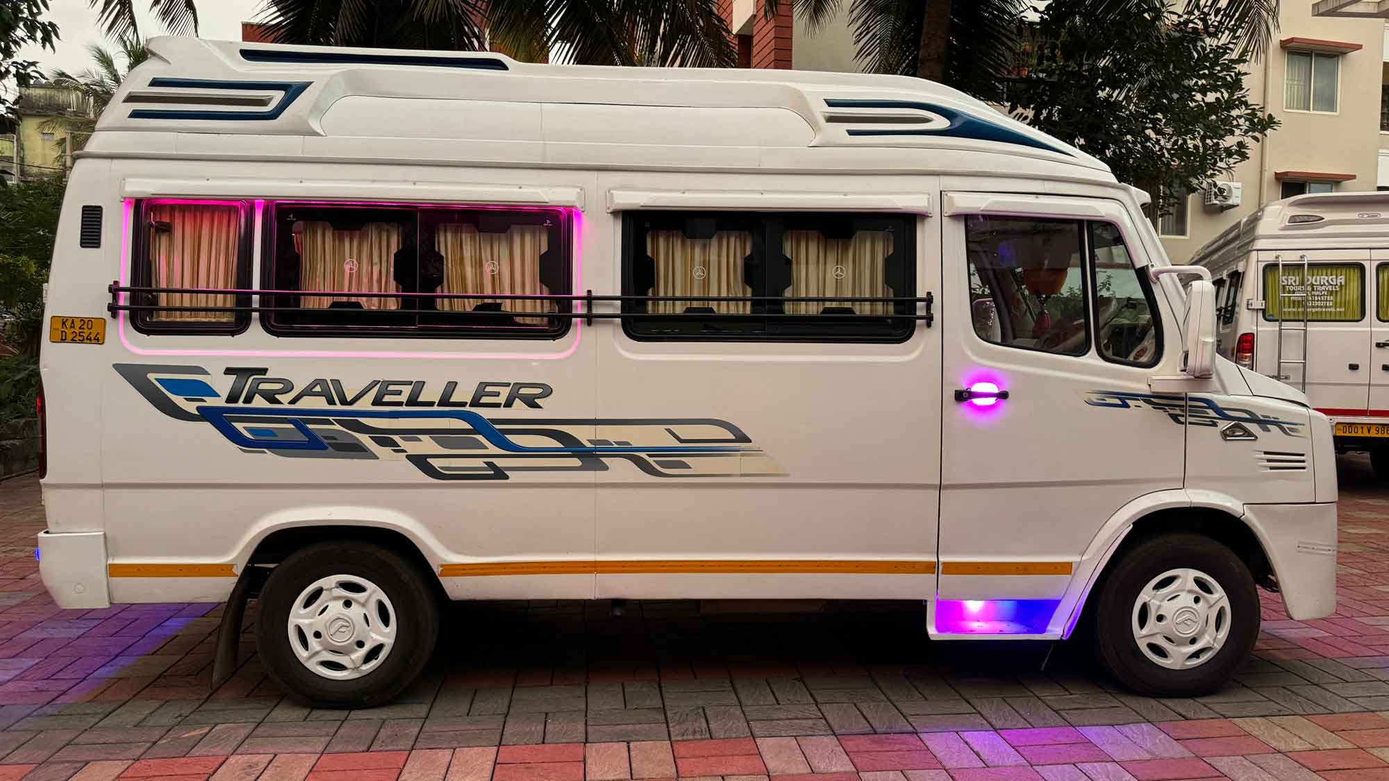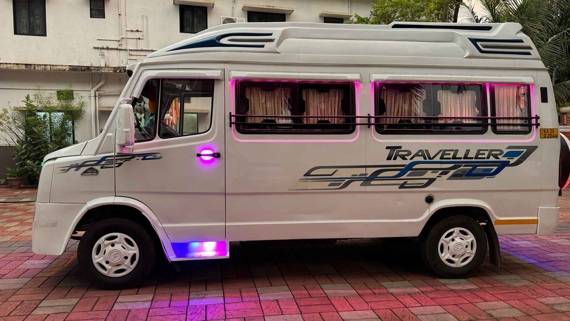 Force traveler is a luxurious caravan to travel keeping in mind of comfort, styling, amenities and reliability. It offers exceptional travel experience since it is loaded with features such as ambient lighting, TV to watch movie and a good audio system to enjoy your tour. It has ample headroom, legroom and storage compartment to store your small luggages. It also has ample boot space to store your bigger luggage and even a roof carrier system to hold extra luggages if necessary. It even has AC to make your travel even more comforting. Force Traveller comes in two option which is a 14 Seater and 23 Seater.